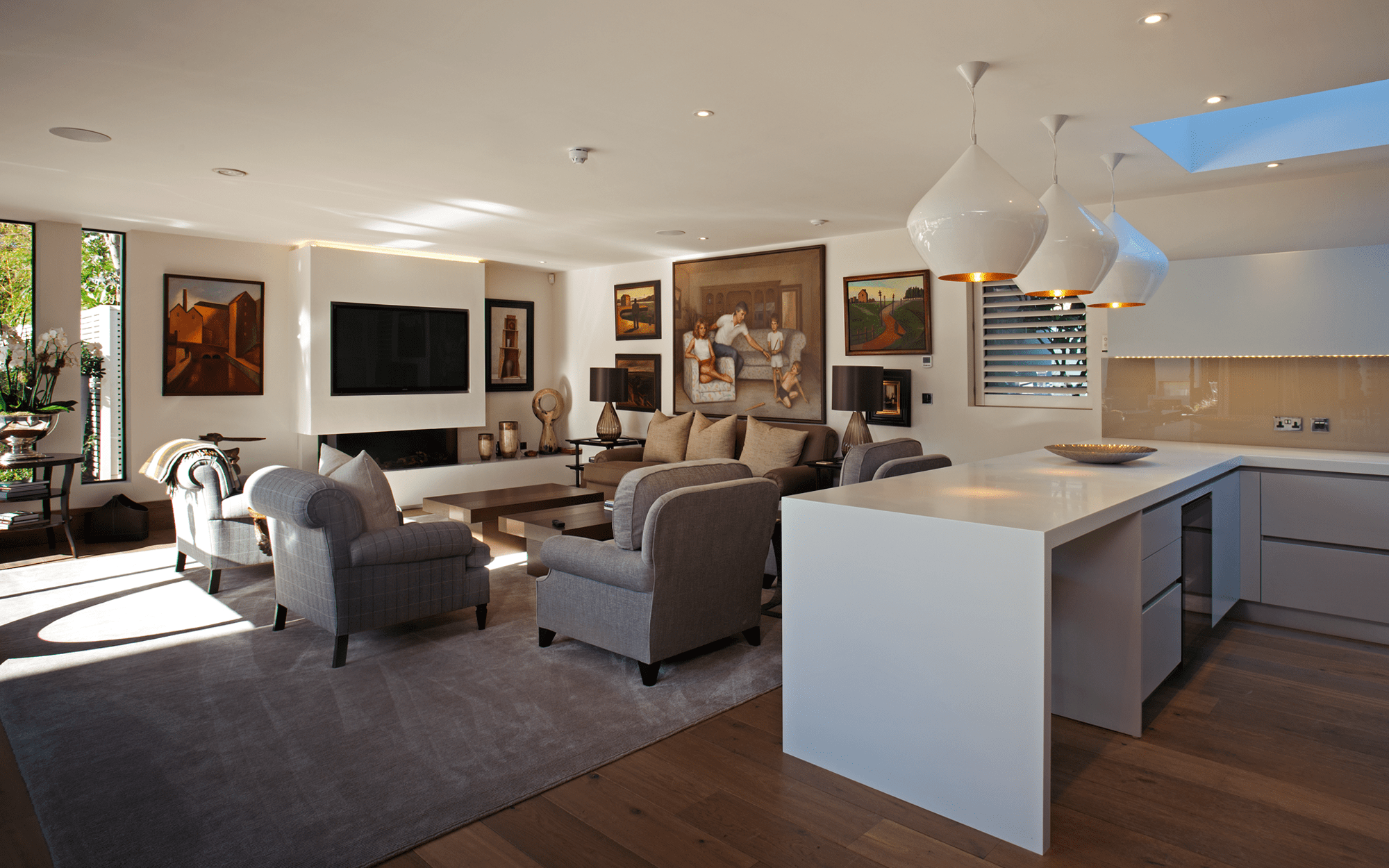 This 5,500 sqft contemporary private family home is located close to the Wimbledon All England Tennis Club. The property boasts an open-plan layout with seamless transitions between indoor and outdoor spaces, featuring a spacious living area that opens onto a private garden.